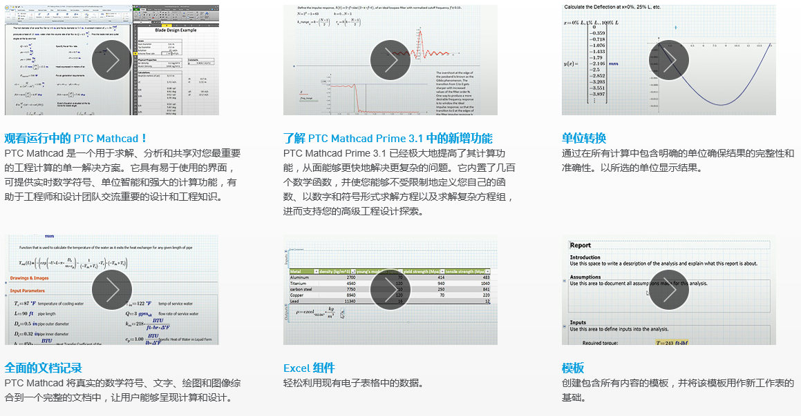 PTC Mathcad 可以完成電子表格、文字處理和演示文稿軟件以及編程應用程序無(wú)法完成的工作 - 將強大的計算功能引入到用戶(hù)可讀的表單中。它將這些可讀的、針對繪圖、圖形、文本和圖像的實(shí)時(shí)計算集成到了一個(gè)以專(zhuān)業(yè)的方式呈現的交互式文檔中。利用這種熟悉而方便的工程記事本,您可以進(jìn)行設計探索、驗證和確認以及清晰地傳達重要的工程信息。您無(wú)需成為 PTC Mathcad 專(zhuān)家就能閱讀和理解 PTC Mathcad 文檔。
